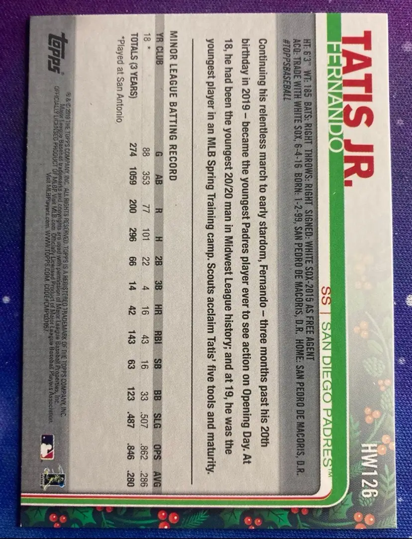 2019 Fernando Tatis Jr. Topps Holiday #HW126 San Diego Padres RC