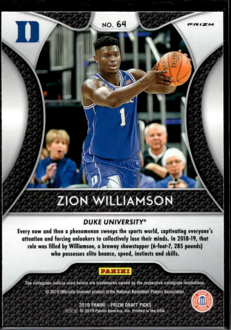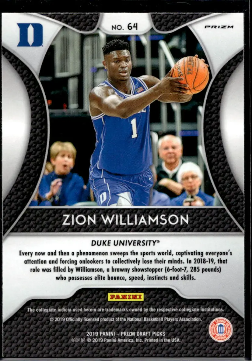 Lot of 3 2019 Panini Prizm Draft Picks Zion Williamson RC's Purple #64 Pink Pulsar #64 Base #1