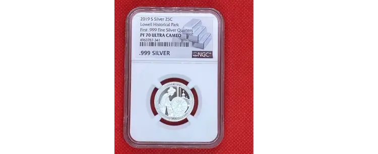 2019-S Washington Quarter - Lowell Historical Park - PF70 Ultra Cameo (NGC) Capture a piece of American history with this flawless 2019-S Washington Quarter, graded PF70 Ultra Cameo by NGC. Struck at the San Francisco Mint, this coin is part of the America the Beautiful series, celebrating the Lowell National Historical Park in Massachusetts—a tribute to the birthplace of the American Industrial Revolution. The obverse features John Flanagan's timeless portrait of George Washington, while the reverse showcases a beautifully detailed design of a mill worker at Lowell, symbolizing the ingenuity and perseverance that shaped the nation. With its Ultra Cameo designation, this proof coin boasts stunning mirror-like fields and frosted details, creating a striking visual contrast. Encased in NGC's protective holder, this coin is preserved in pristine condition, ensuring its authenticity and long-term value. Whether you're a seasoned numismatist or a passionate collector, this 2019-S Washington Quarter is a remarkable addition to any collection, blending artistry, history, and craftsmanship. Don't miss the opportunity to own this exceptional piece!