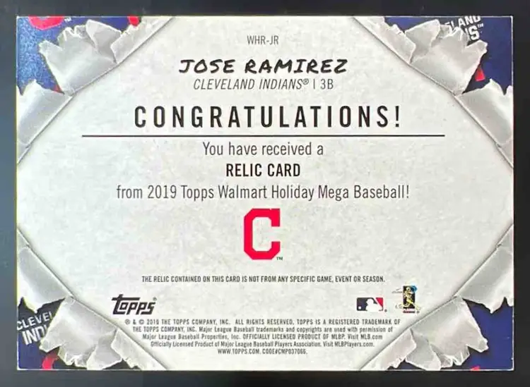 2019 Topps Baseball Holiday Jose Ramirez Relics #WHR-JR MEM Cleveland Indians