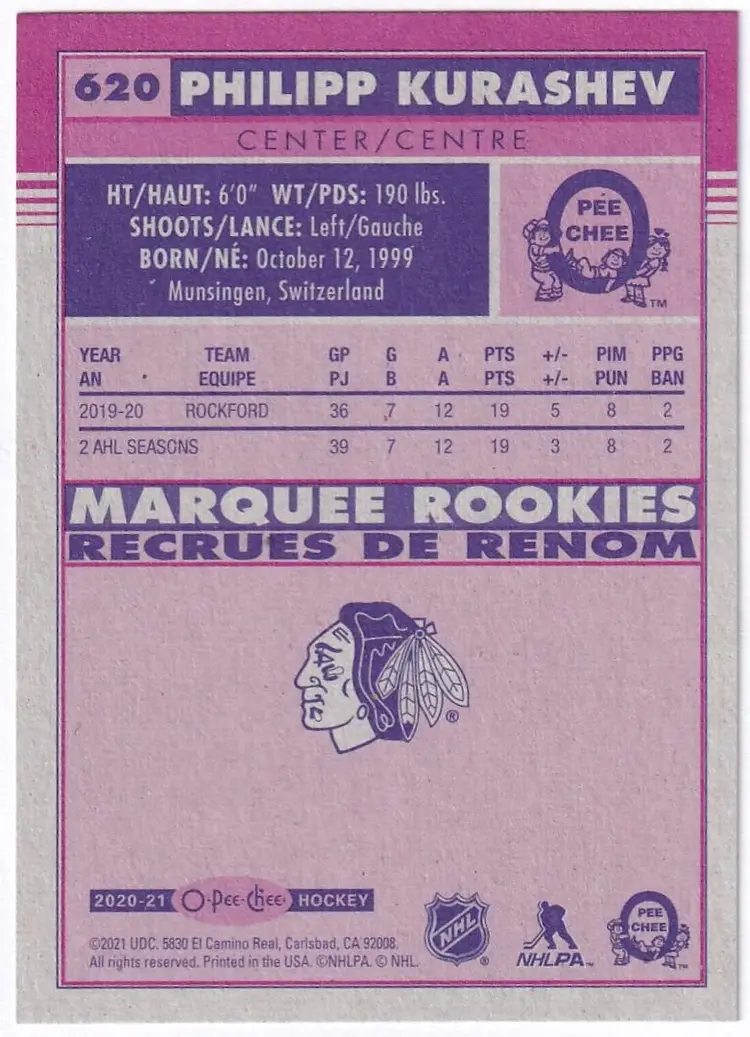 2020-21 O-Pee-Chee Retro #620 Philipp Kurashev Chicago Blackhawks