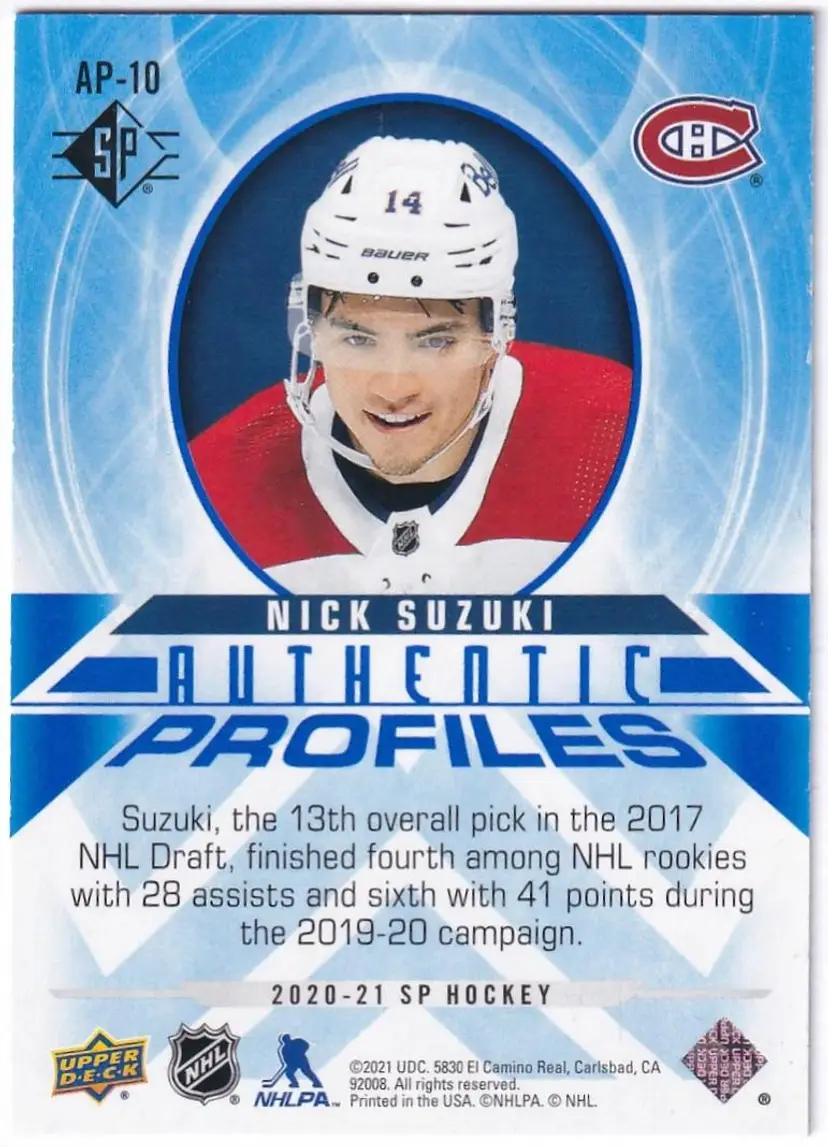 2020-21 SP Authentic Profiles Blue #AP10 Nick Suzuki Montreal Canadiens