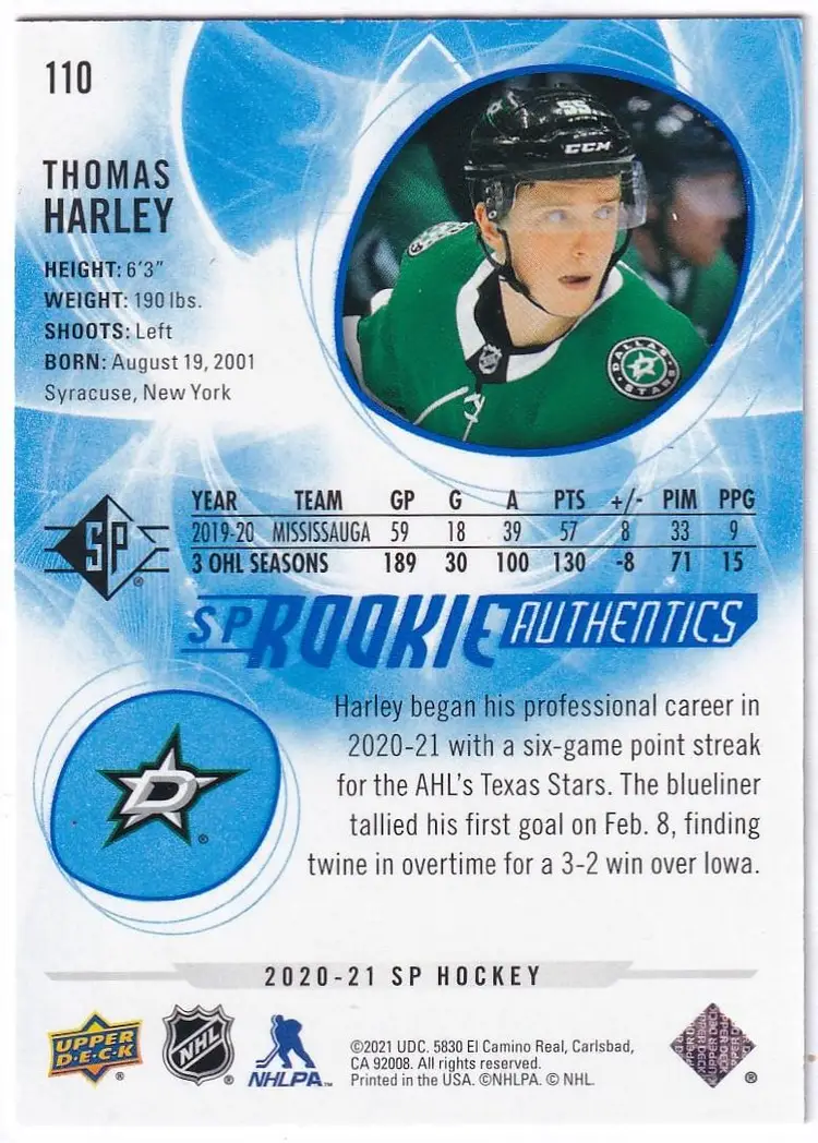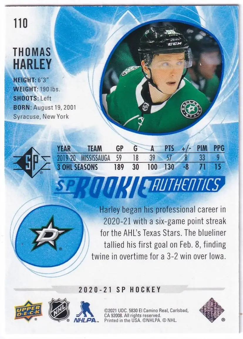 2020-21 SP Blue #110 Thomas Harley Dallas Stars