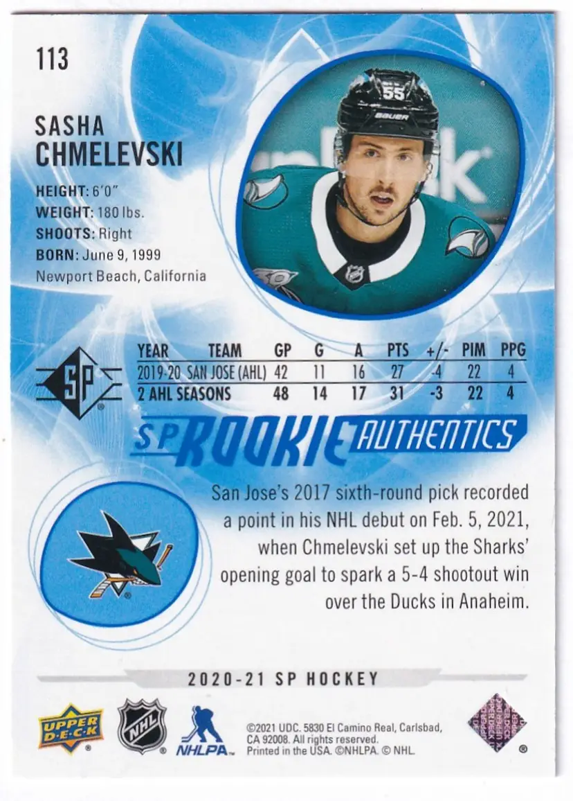 2020-21 SP Blue #113 Sasha Chmelevski San Jose Sharks