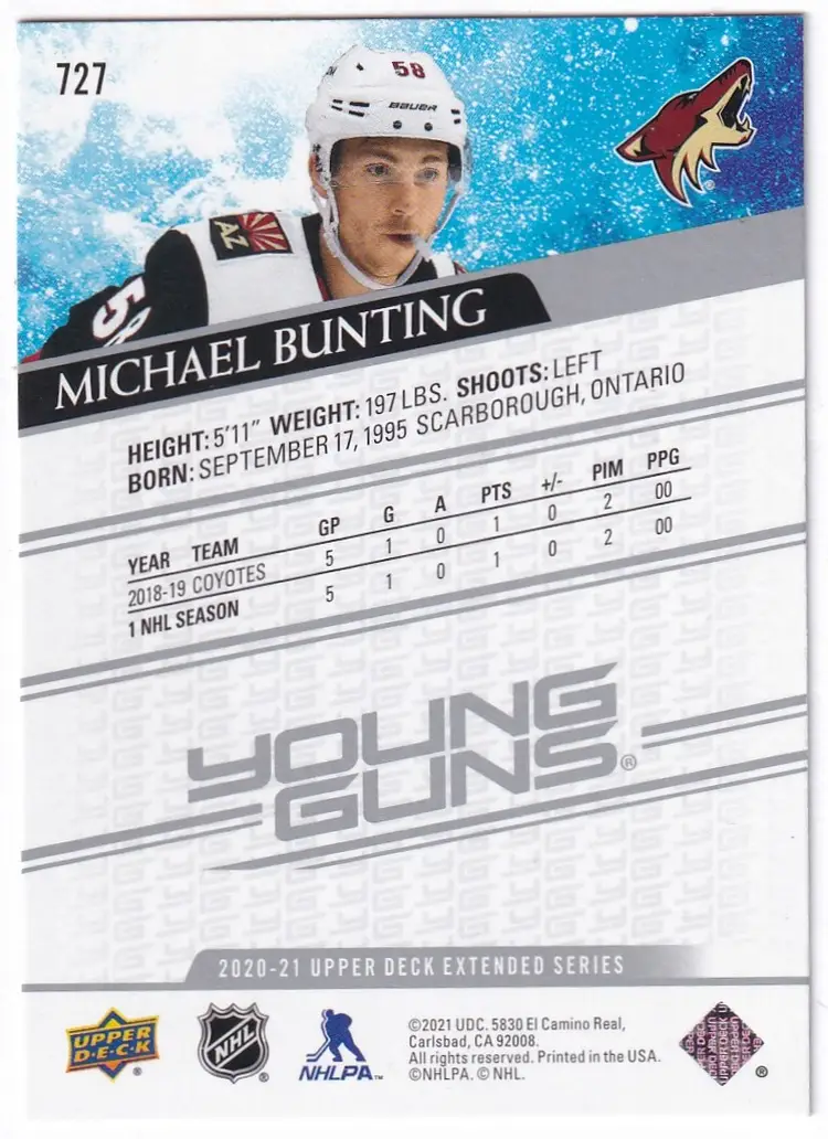 2020-21 Upper Deck #727 Michael Bunting YG RC Arizona Coyotes
