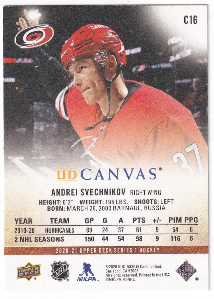 2020-21 Upper Deck Canvas #C16 Andrei Svechnikov Carolina Hurricanes