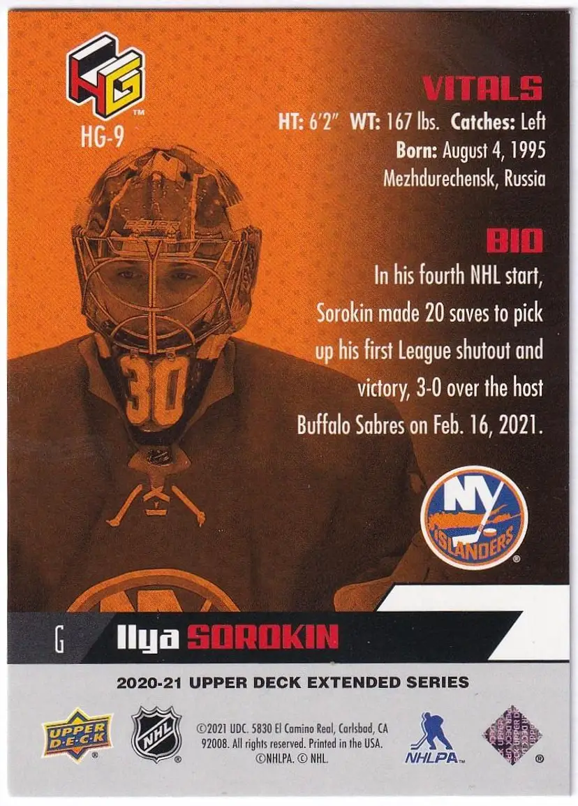 2020-21 Upper Deck HoloGrFx Rookies #HG9 Ilya Sorokin New York Islanders