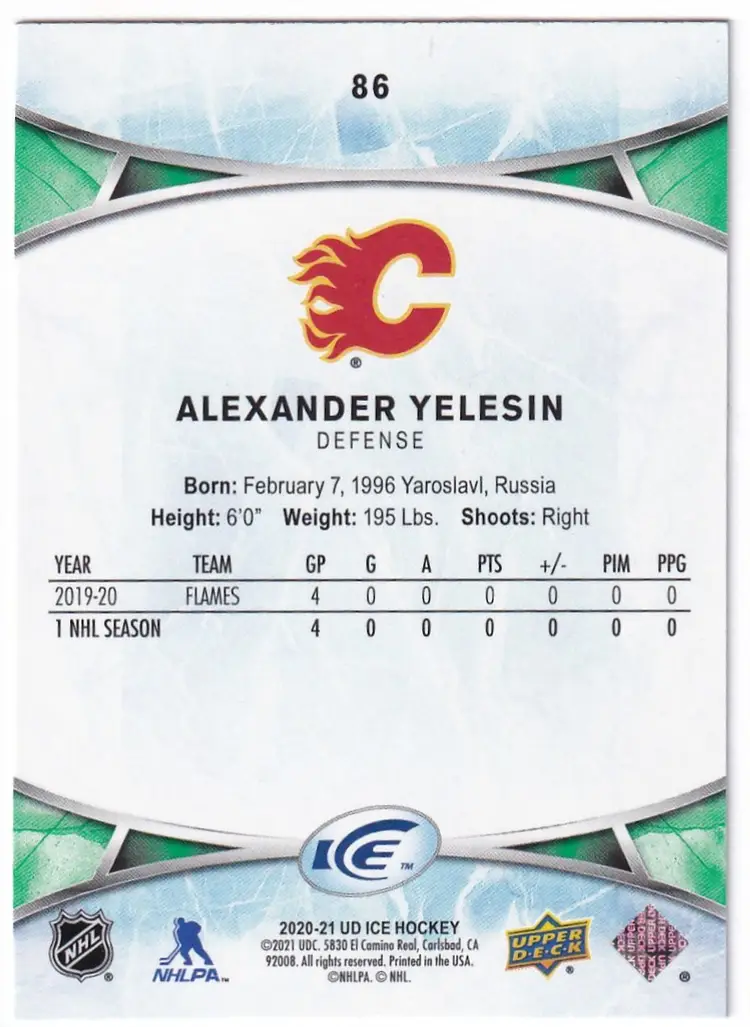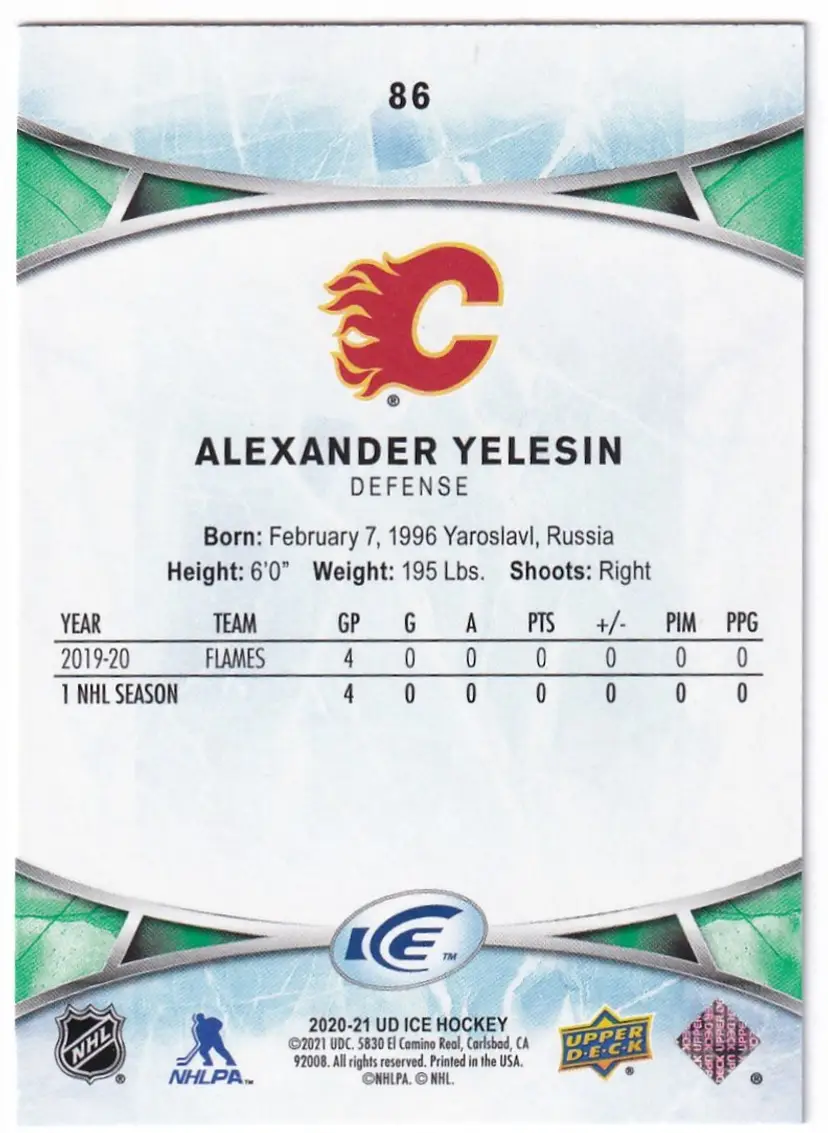 2020-21 Upper Deck Ice Green #86 Alexander Yelesin Calgary Flames