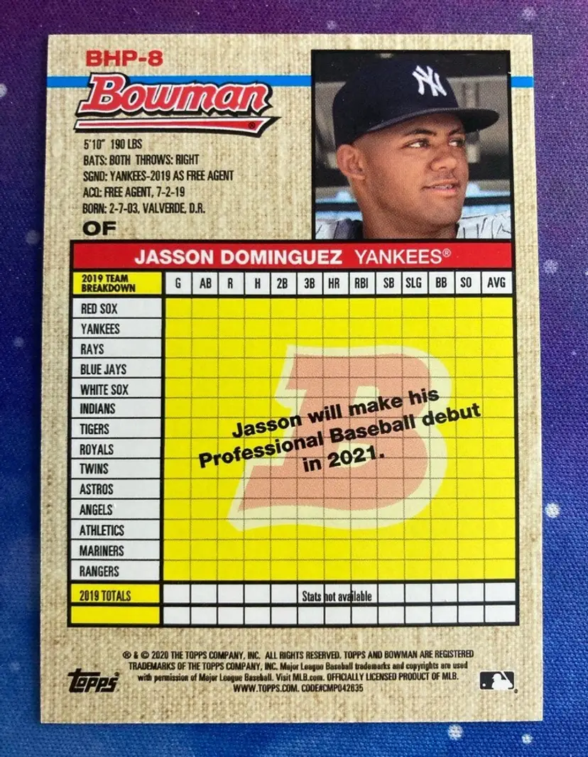 2020 Jasson Dominguez Bowman Heritage Image Variation #BHP-8 NY Yankees