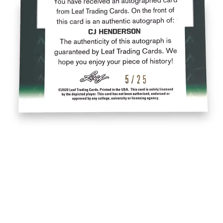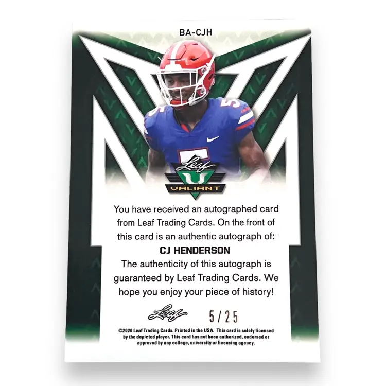 Here We Have a 2020 Leaf Valiant CJ Henderson RC Auto 05/25 JERSEY MATCH Carolina Panthers