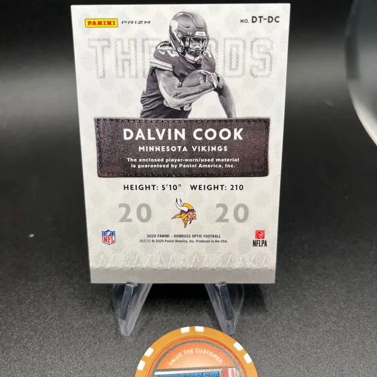 The newest member of the NY Jets! Dalvin Cook! Player worn patch. Slight chipping in upper right corner, typical with big chunky cards.
