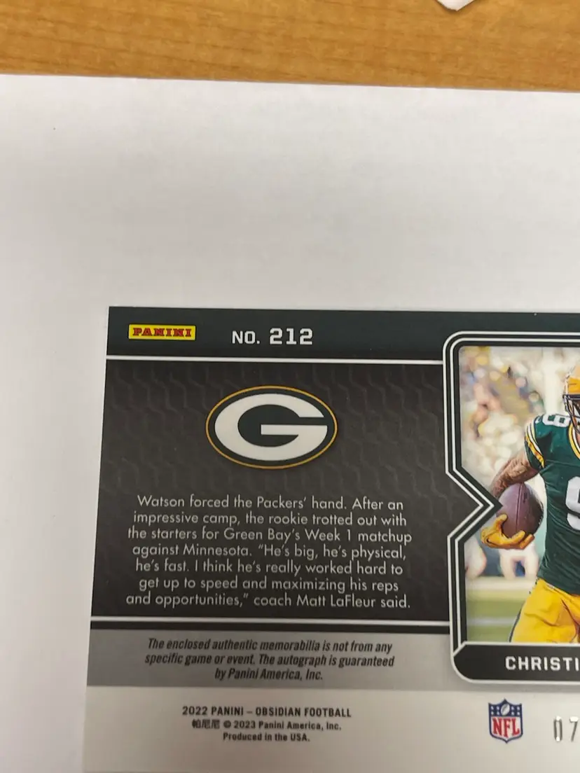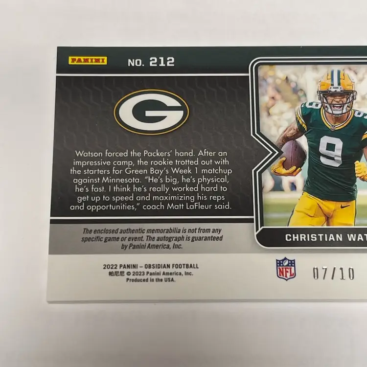 2020 obsidian Christian Watson rookie RPA Green Bay Packers 7/10