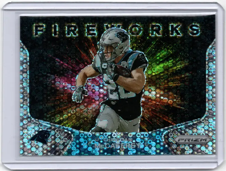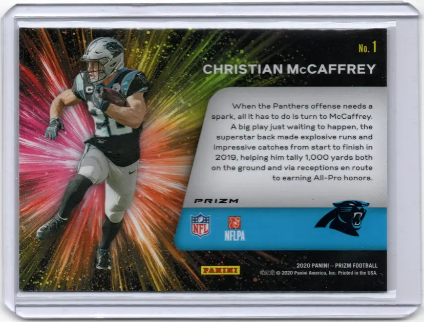 2020 Panini Prizm #1 Christian McCaffrey No Huddle Prizm Fireworks