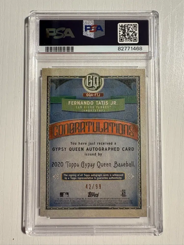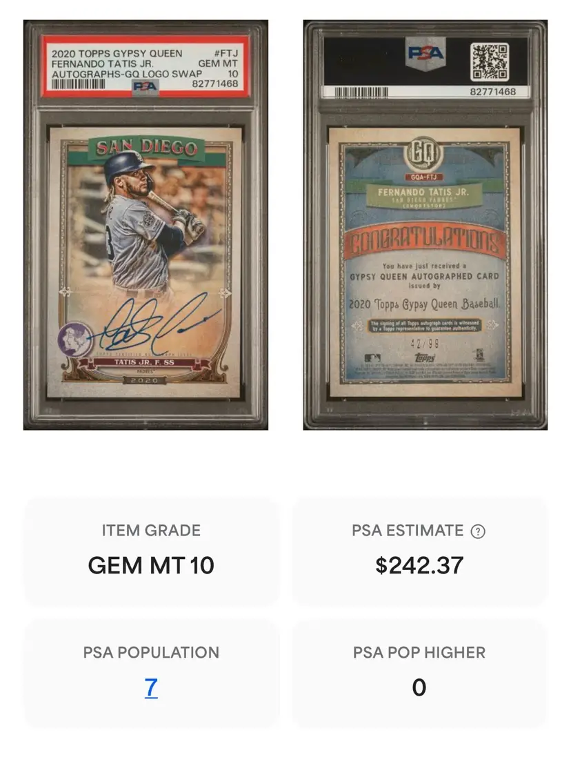 2020 Topps Gypsy Queen Logo Swap SP Fernando Tatis Jr. On Card Autograph PSA 10 Numbered 42/99 Population only 7!