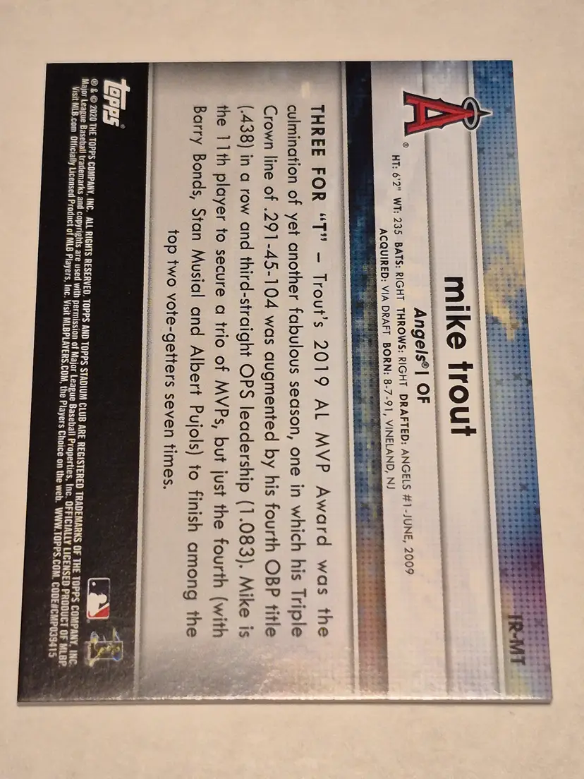 Cool card of Trout! Card is in NM-MT condition.