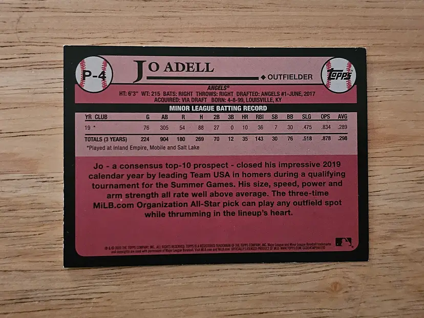 2020 Topps Update Series Baseball #1 Prospect Jo Adell Angels Card #P-4.