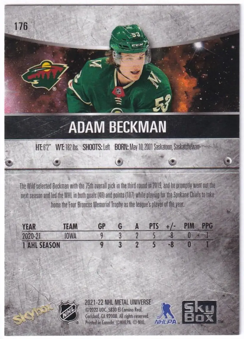 2021-22 Metal Universe #176 Adam Beckman RC Minnesota Wild