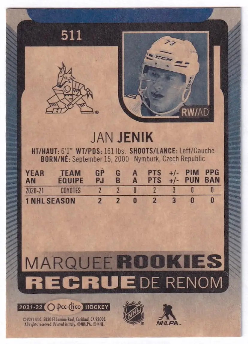 2021-22 O-Pee-Chee Blue #511 Jan Jenik Arizona Coyotes