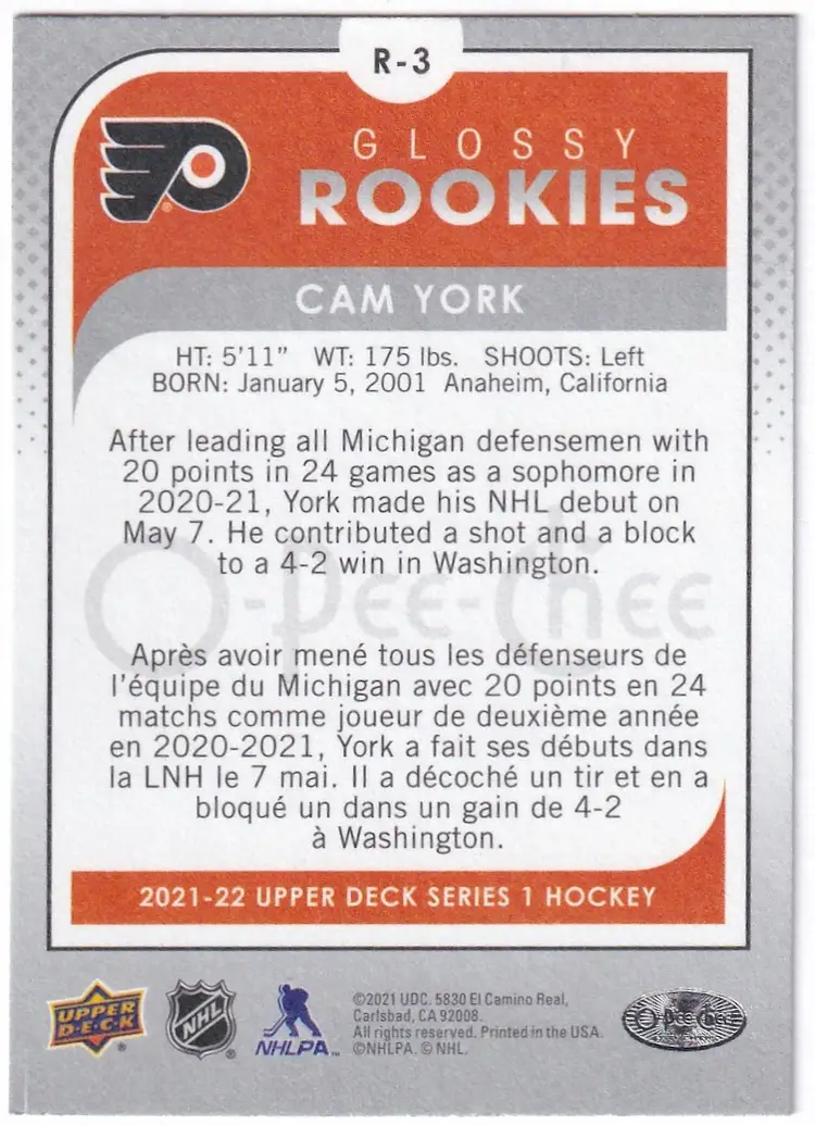 2021-22 O-Pee-Chee Glossy #R3 Cam York Philadelphia Flyers
