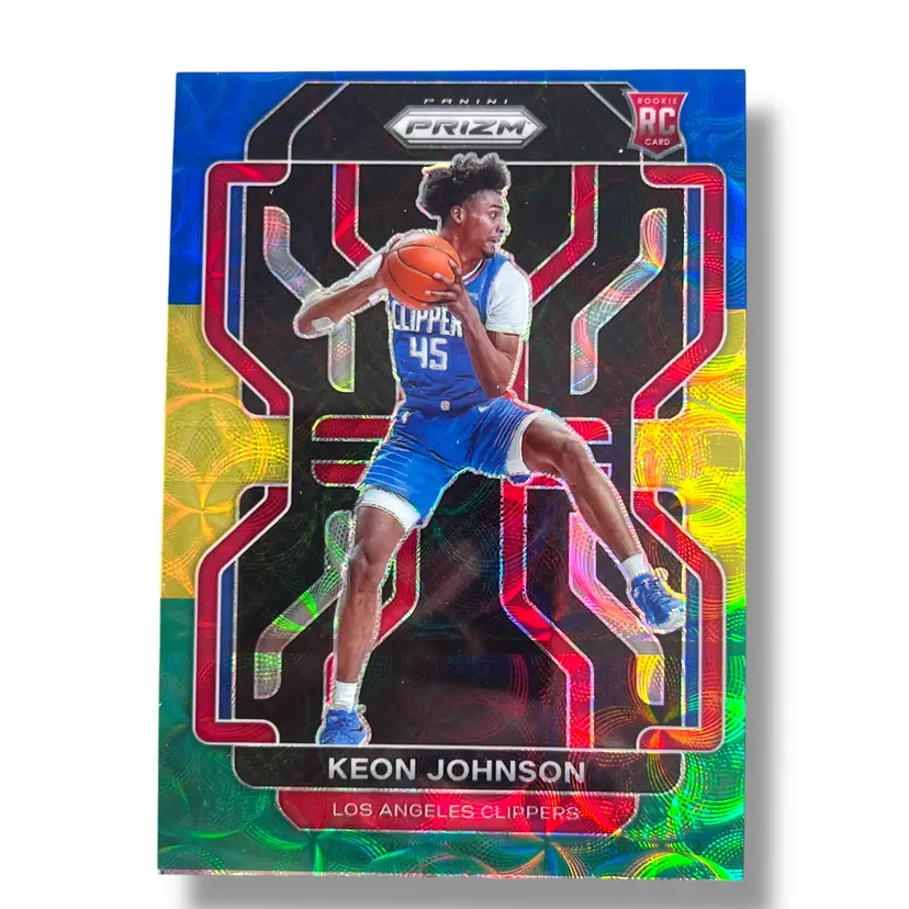 Here We Have a 2021-22 Panini Prizm Keon Johnson #326 Choice Blue Yellow Green Prizm (RC)