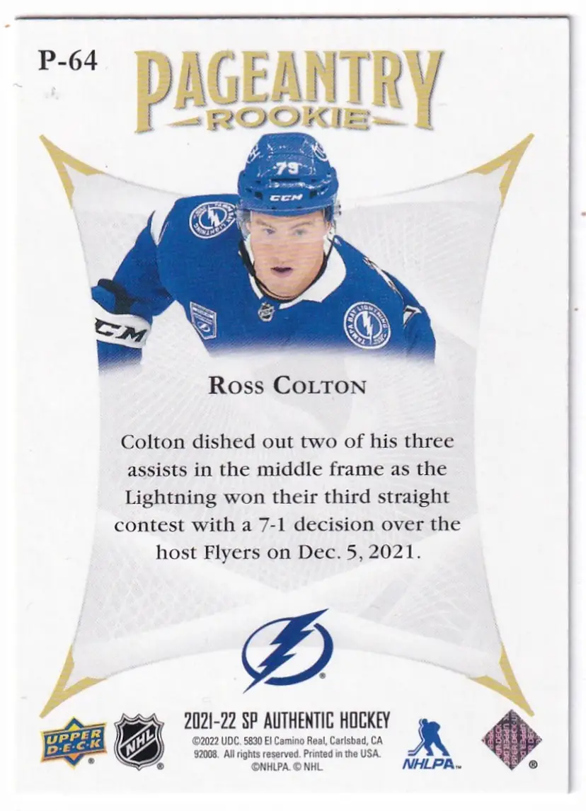 2021-22 SP Authentic Pageantry #P64 Ross Colton Tampa Bay Lightning