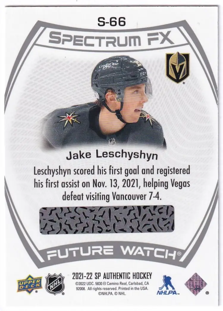 2021-22 SP Authentic Spectrum FX #S66 Jake Leschyshyn FW Vegas Golden Knights (Unscratched)