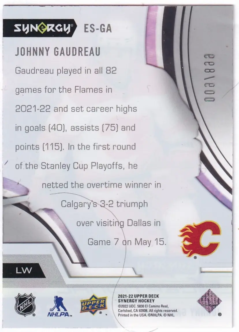 2021-22 Synergy Exceptional Stars #ESGA Johnny Gaudreau Calgary Flames Print Run - 899