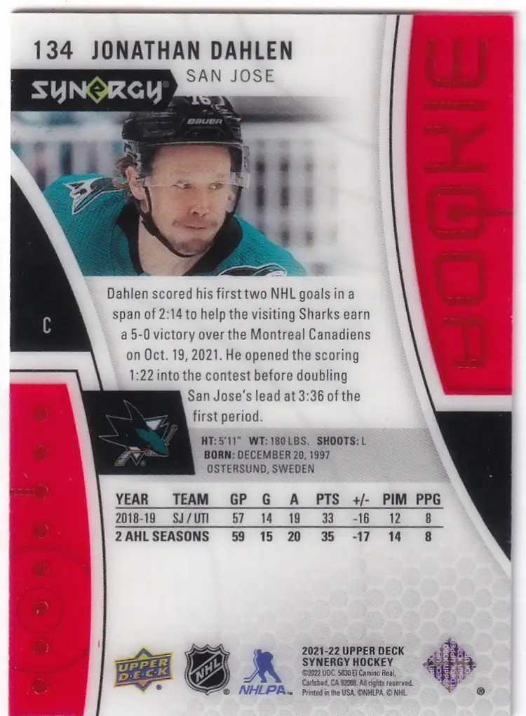 2021-22 Synergy Red #134 Jonathan Dahlen San Jose Sharks