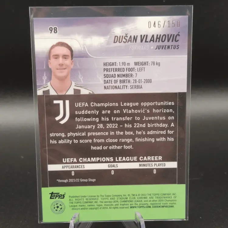 2021-22 Topps Stadium Club Chrome UEFA Champions League Soccer #98 Dusan Vlahovic Green 046/150 Juventus