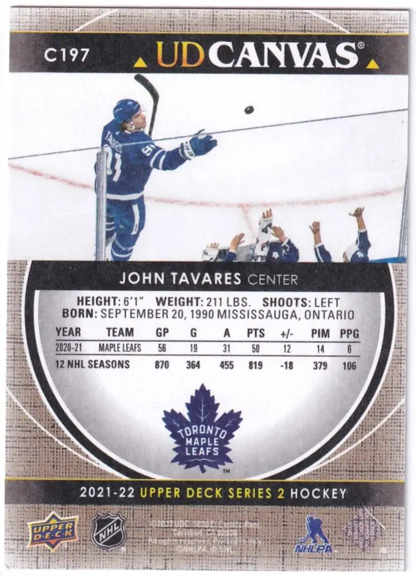 2021-22 Upper Deck Canvas #C197 John Tavares Toronto Maple Leafs Hockey Card