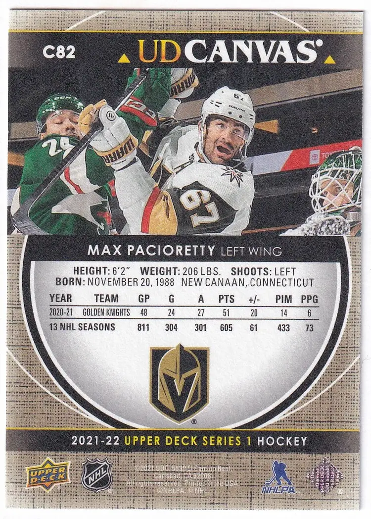 2021-22 Upper Deck Canvas #C82 Max Pacioretty Vegas Golden Knights