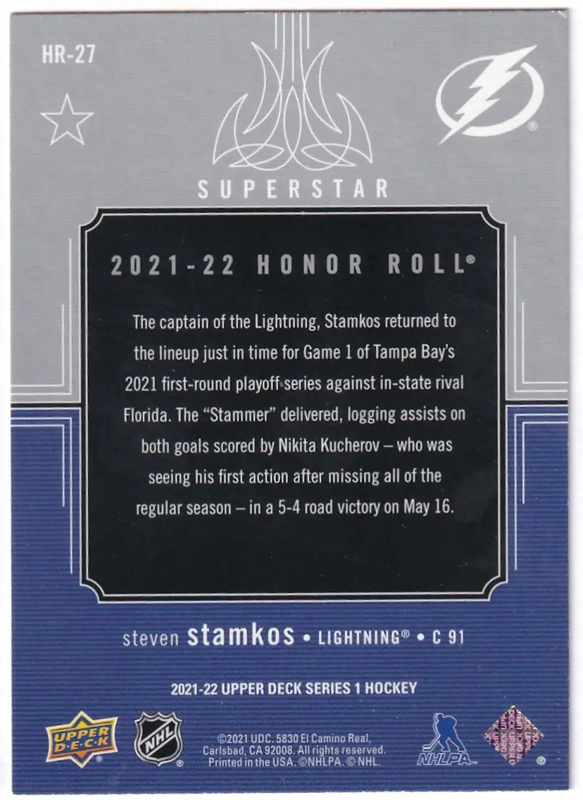 2021-22 Upper Deck Honor Roll #HR27 Steven Stamkos Tampa Bay Lightning