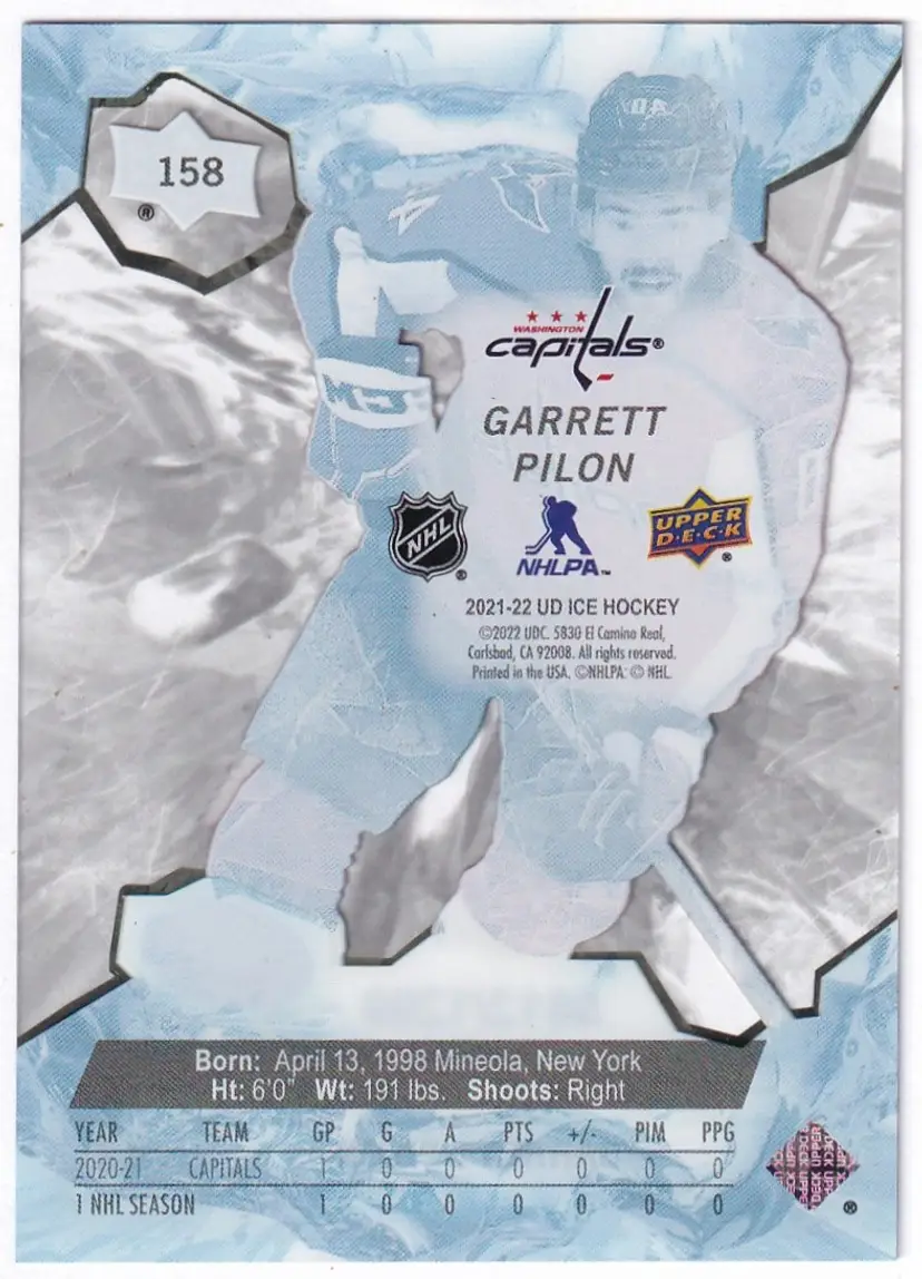 2021-22 Upper Deck Ice #158 Garrett Pilon Washington Capitals Print Run - 1299