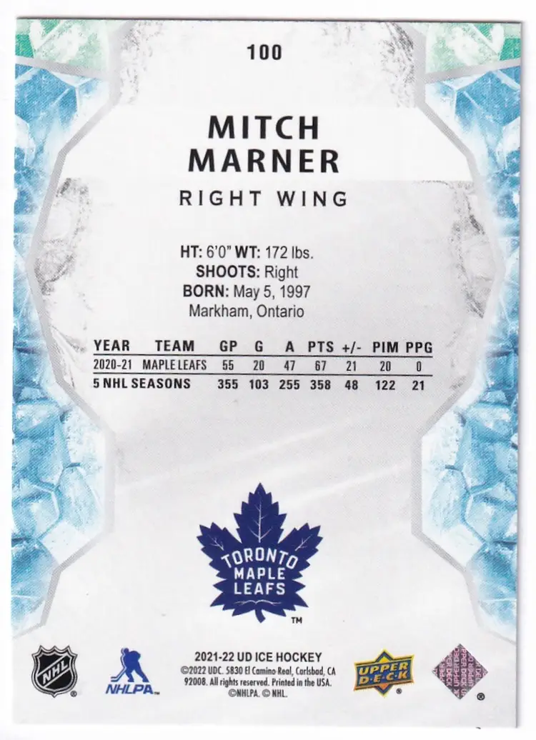 2021-22 Upper Deck Ice Green #100 Mitch Marner Toronto Maple Leafs