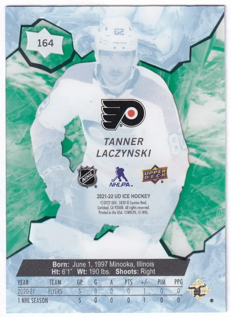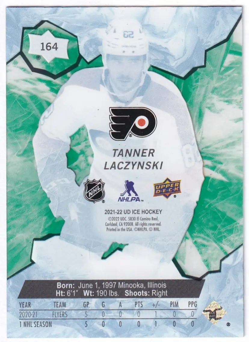 2021-22 Upper Deck Ice Green #164 Tanner Laczynski Philadelphia Flyers Print Run - 799