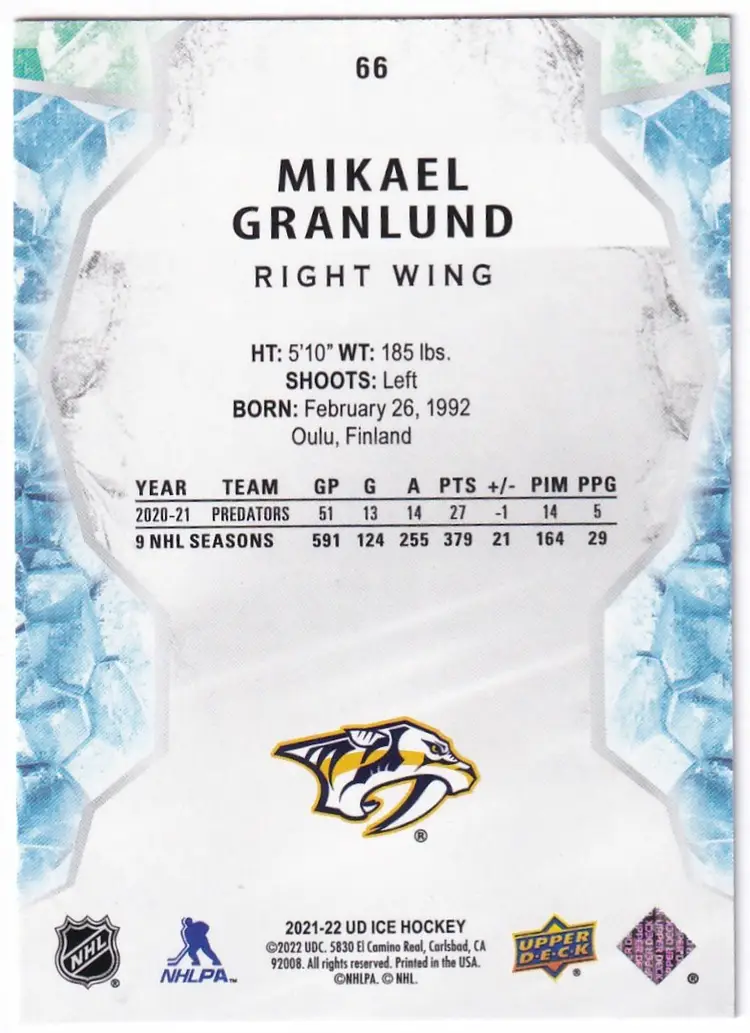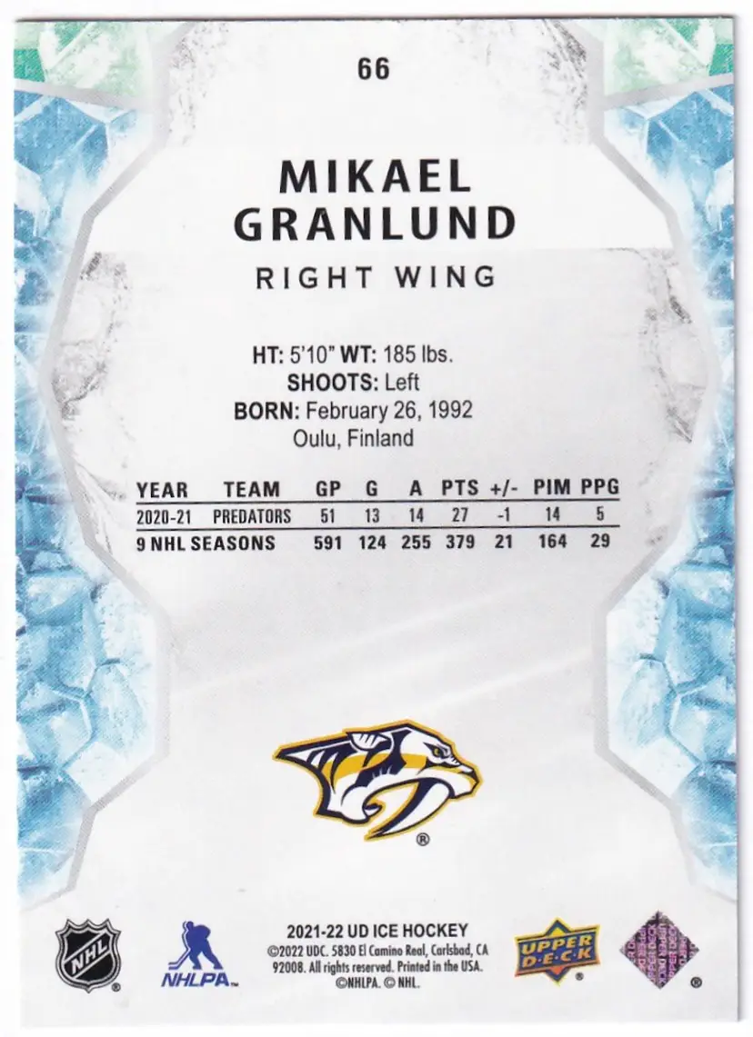 2021-22 Upper Deck Ice Lavender #66 Mikael Granlund Nashville Predators