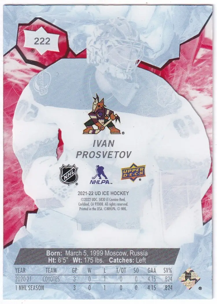 2021-22 Upper Deck Ice Red #222 Ivan Prosvetov Arizona Coyotes Print Run - 399