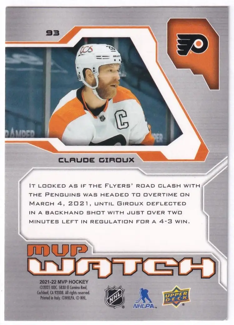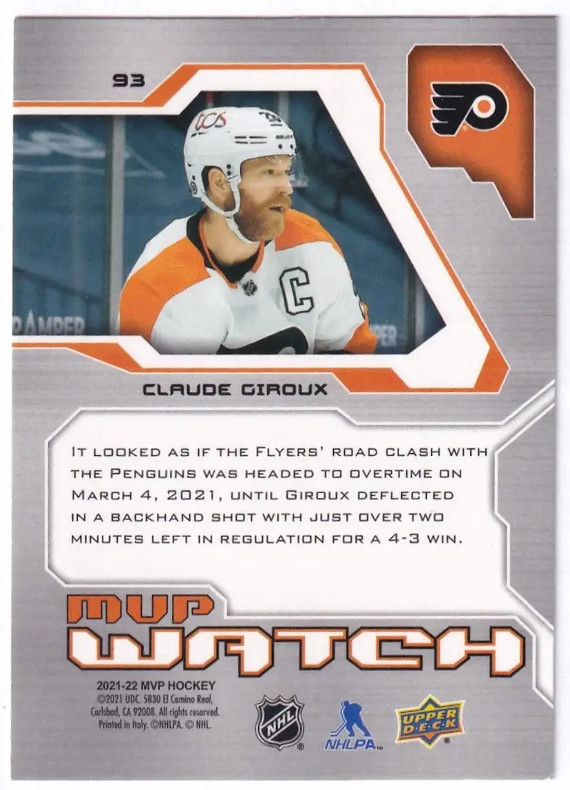 2021-22 Upper Deck MVP 20th Anniversary #93 Claude Giroux Philadelphia Flyers