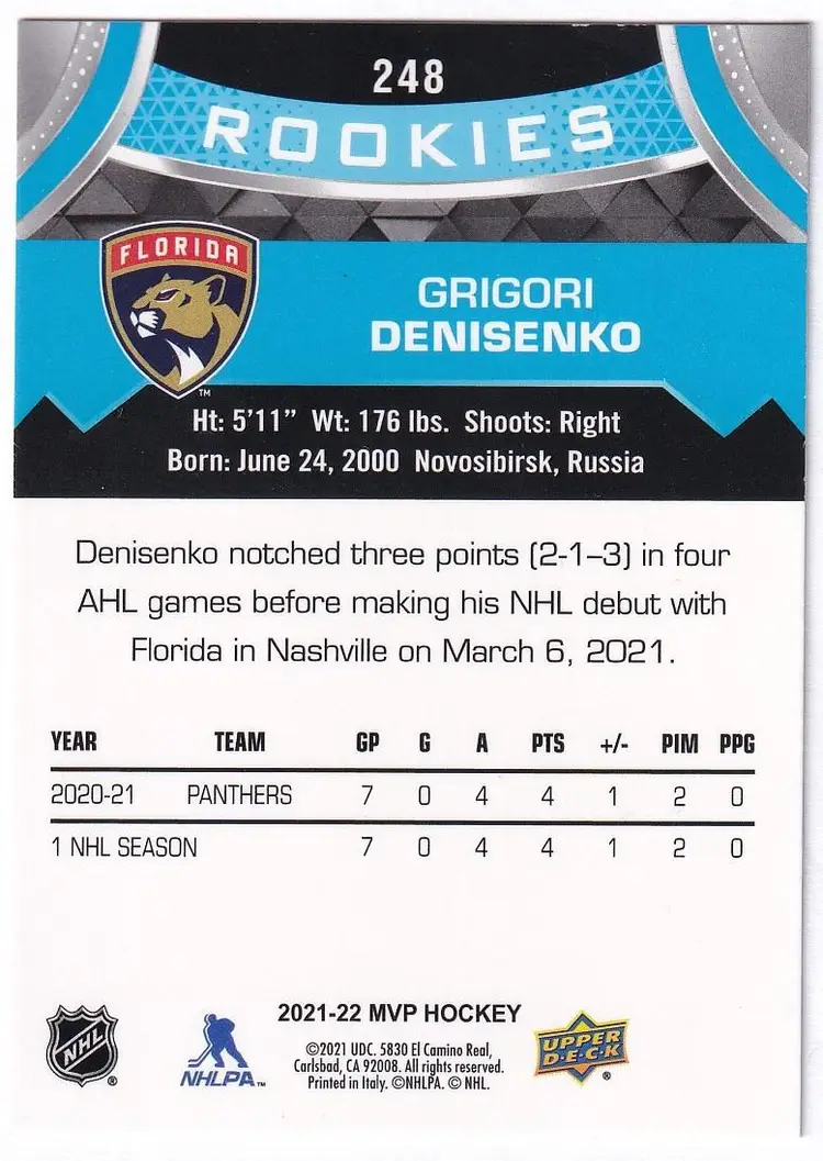 2021-22 Upper Deck MVP #248 Grigori Denisenko SP RC Florida Panthers