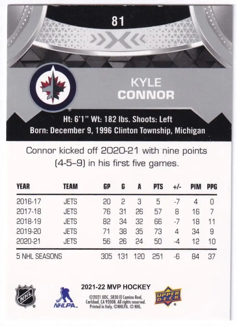 2021-22 Upper Deck MVP Silver Script #81 Kyle Connor Winnipeg Jets