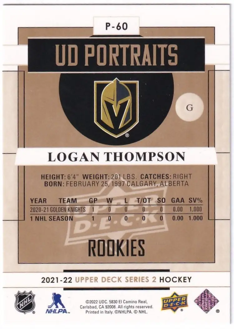 2021-22 Upper Deck Portraits #P60 Logan Thompson Vegas Golden Knights