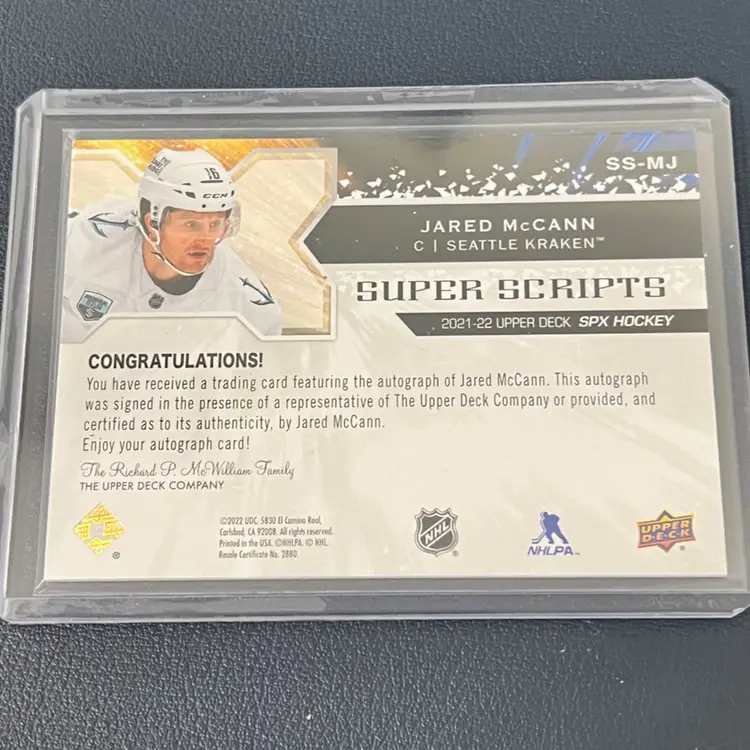 2021-22 Upper Deck SPx Jared McCann Super Scripts Auto Seattle Kraken