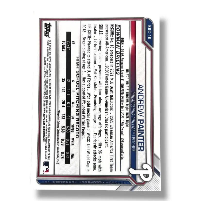 Here We Have a 2021 Bowman Draft Sapphire Andrew Painter 1st Bowman Philadelphia Phillies