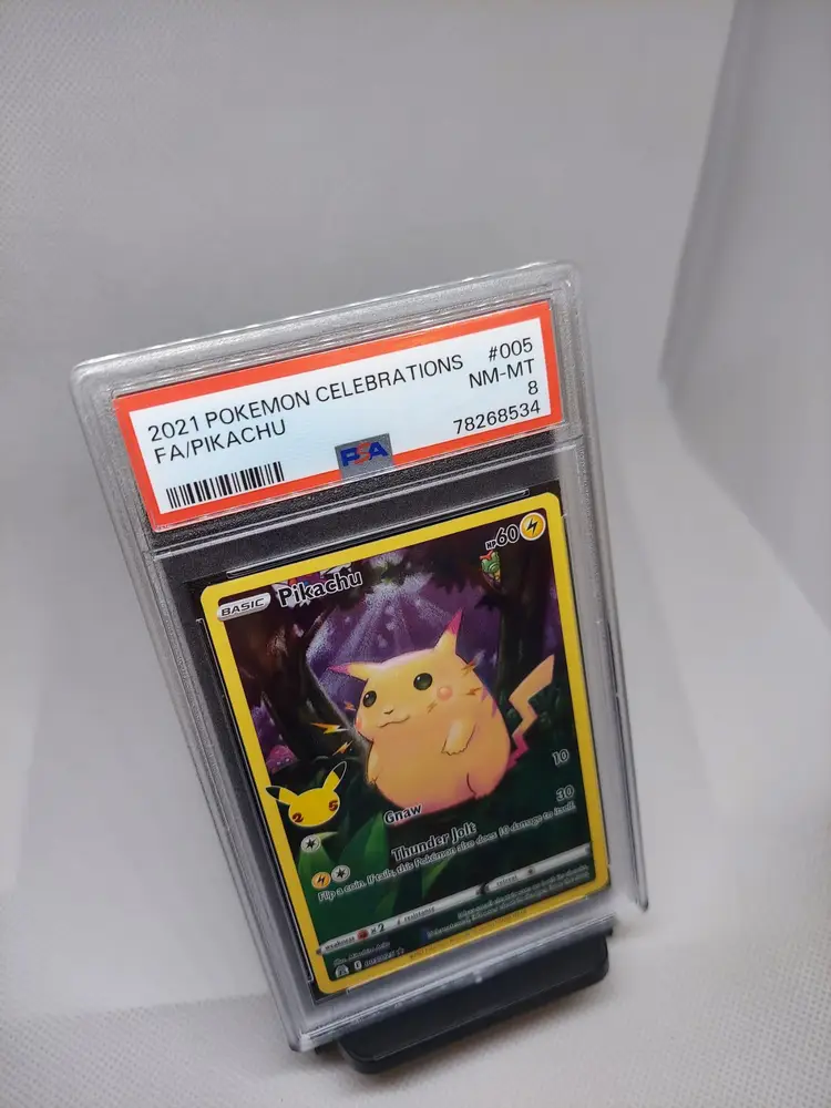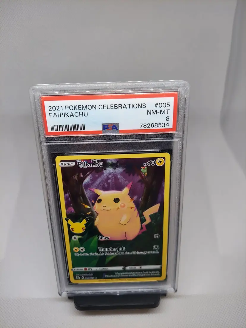 2021 Full Art Pikachu from the celebrations set in a PSA 8 at a discount slab price!