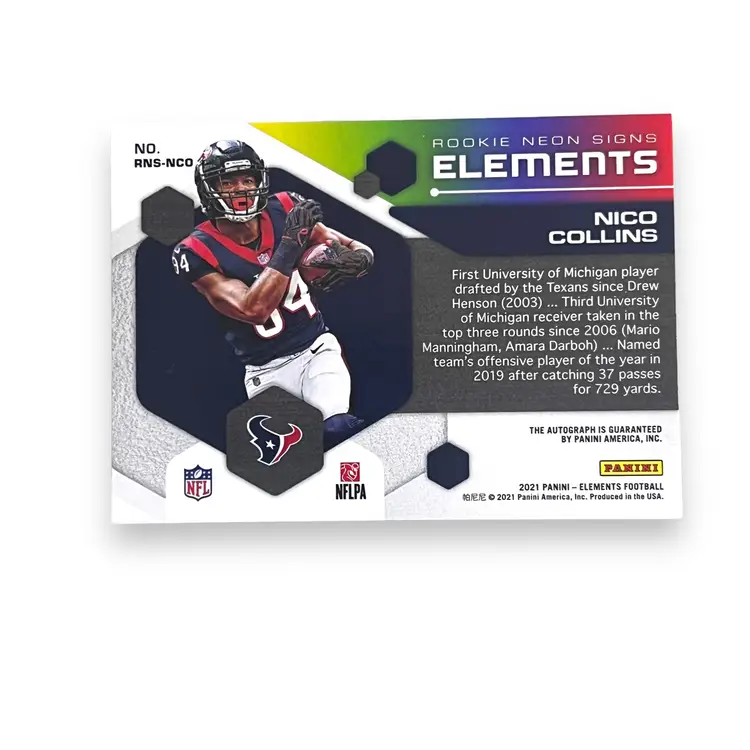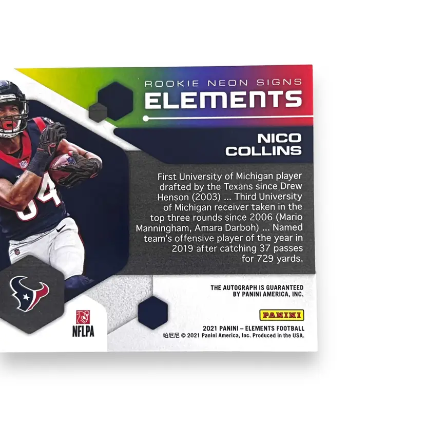 Here We Have a 2021 Nico Collins RC Auto 12/50 Panini Elements Rookie Neon Signs Houston Texans