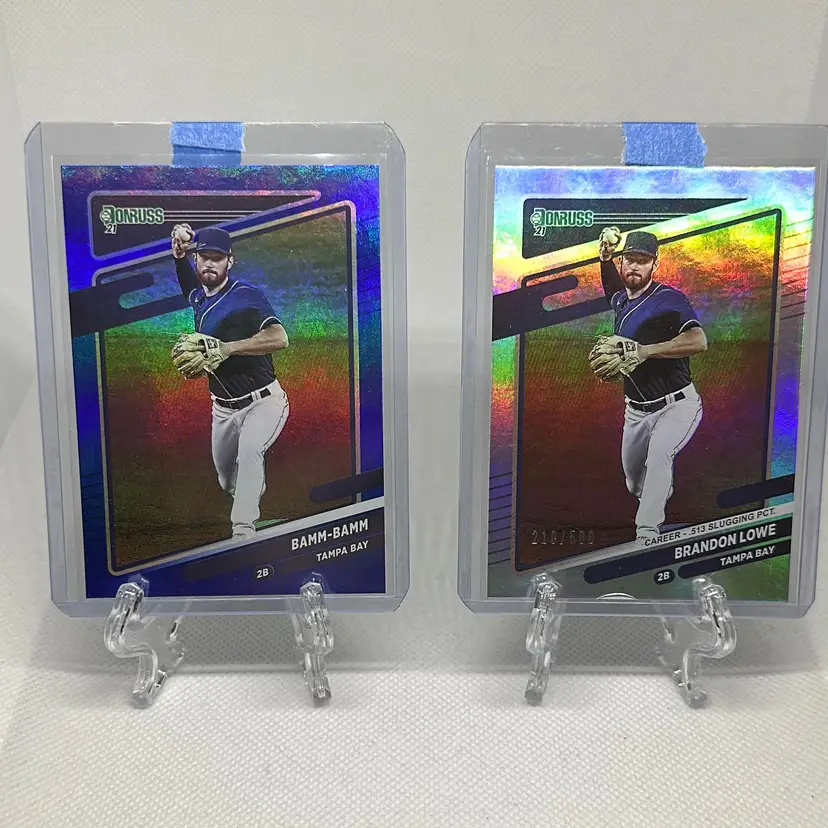 2021 Panini Donruss (2) Brandon Lowe Tampa Bay Rays Silver Foil /500 and Blue Foil Name Variation