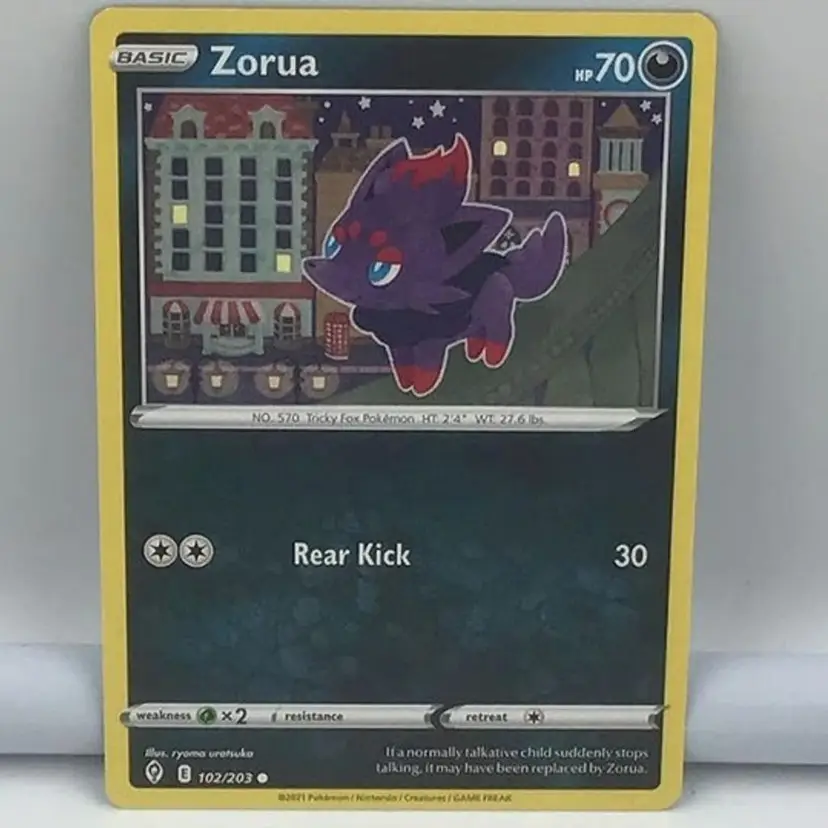 Hello, what we have is a New Collector Trading Card from Pokemon. Year: 2021 Series: Pokemon Character: Zorua HP: 70 hp