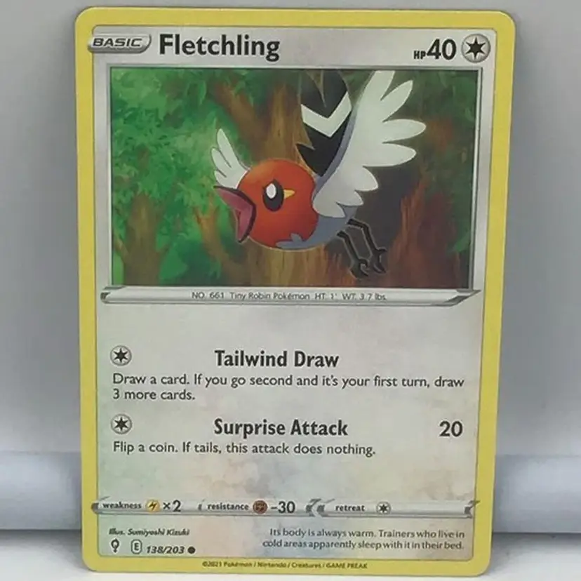 Hello, what we have is a Collector Trading Card from the Pokemon Series. Year: 2021 Series: Pokemon Card: Fletchling HP: 40 Number: 157/203