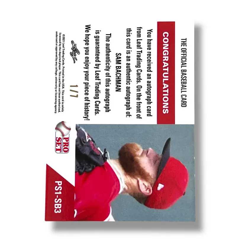 Here We Have a 2021 Pro Set Metal 1991 Pro Set Sam Bachman Base Autographs Mojo Silver 1/7