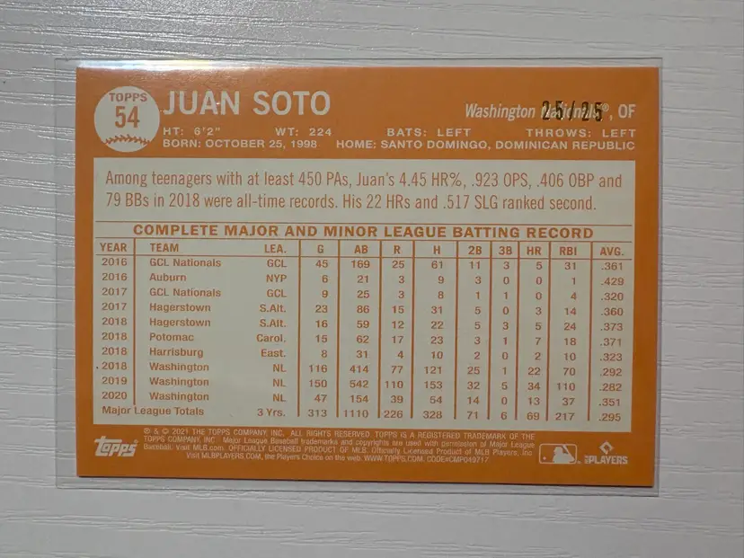 2021 Topps All-Star Rookie Cup Juan Soto Orange Holofractor Numbered 25/25!